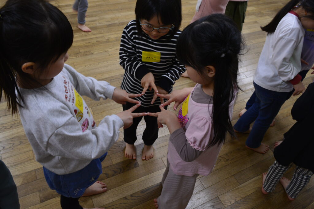 3歳児クラスの子どもたちは、初めての教室に少しドキドキしながらも、ワクワクした様子で参加していました。ベンジャミン先生のことをじっと見つめて観察したり、先生の言葉や動きに合わせて体を動かしたりしながら、楽しく英語に触れることができました。