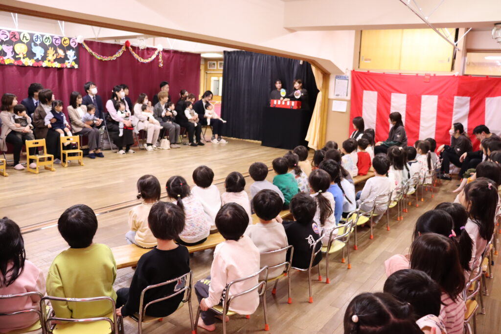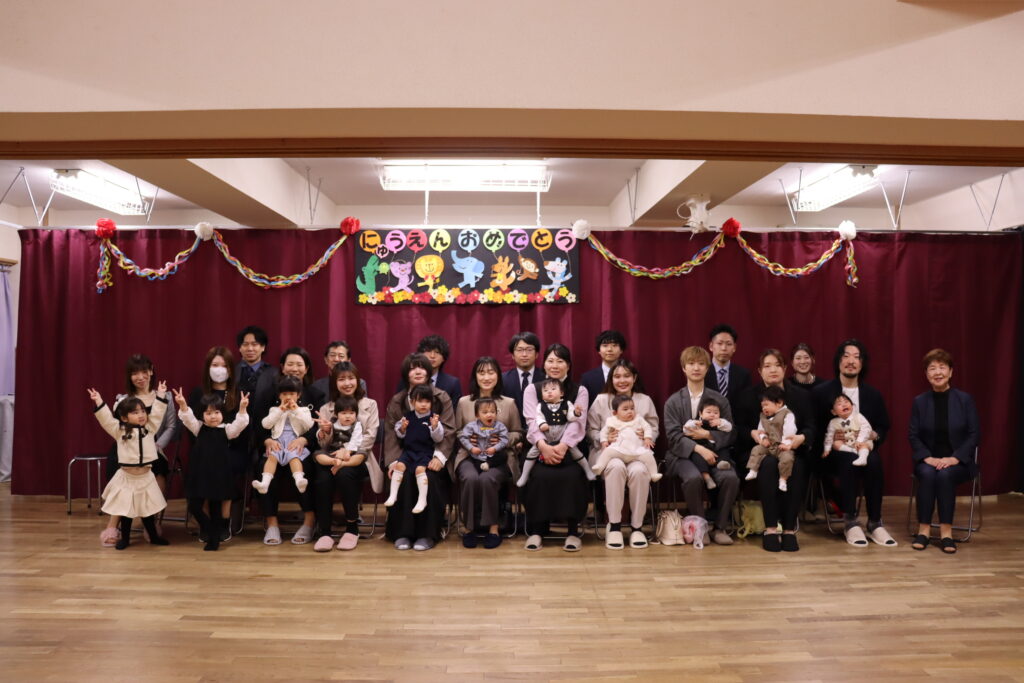 少し緊張した様子の新入園児のお友達を見て、在園児の子ども達からは、思わず『かわいい~』とつぶやく声が聞かれ、温かい雰囲気に包まれました。